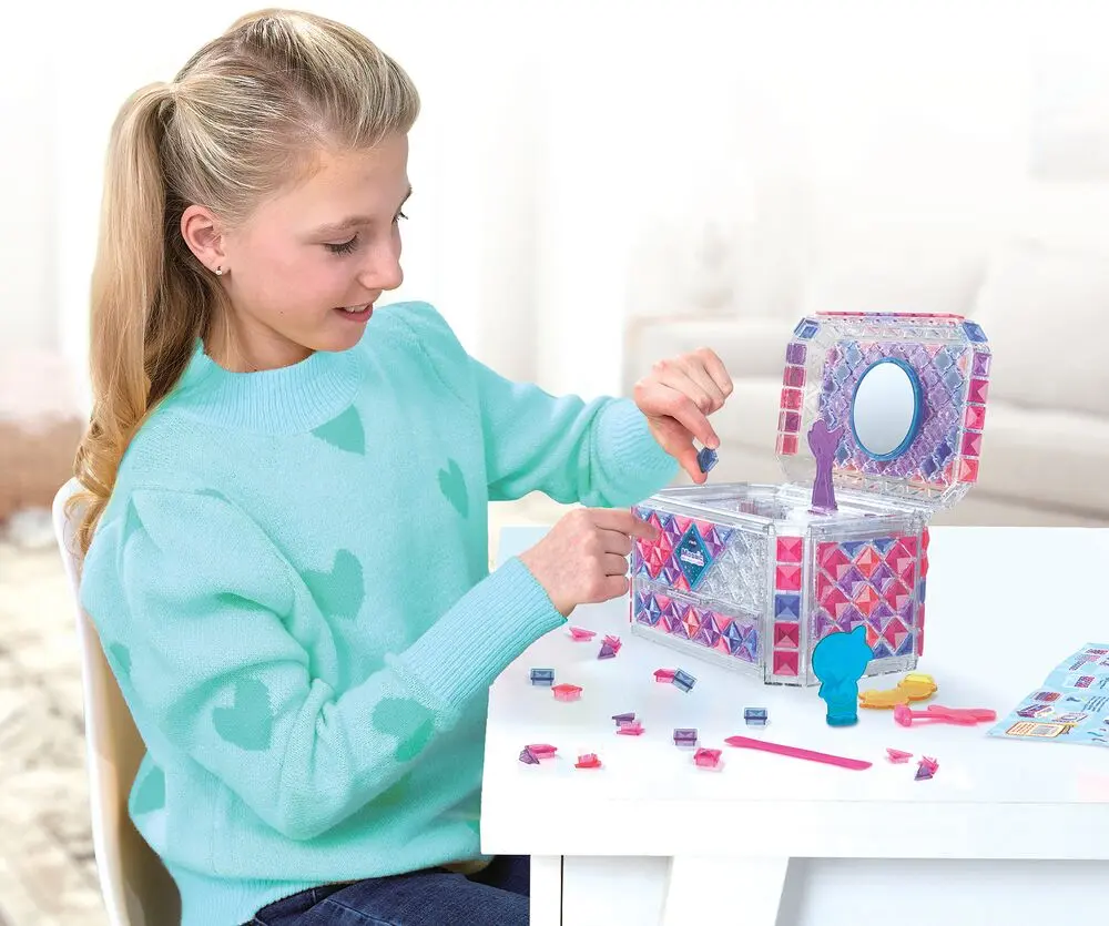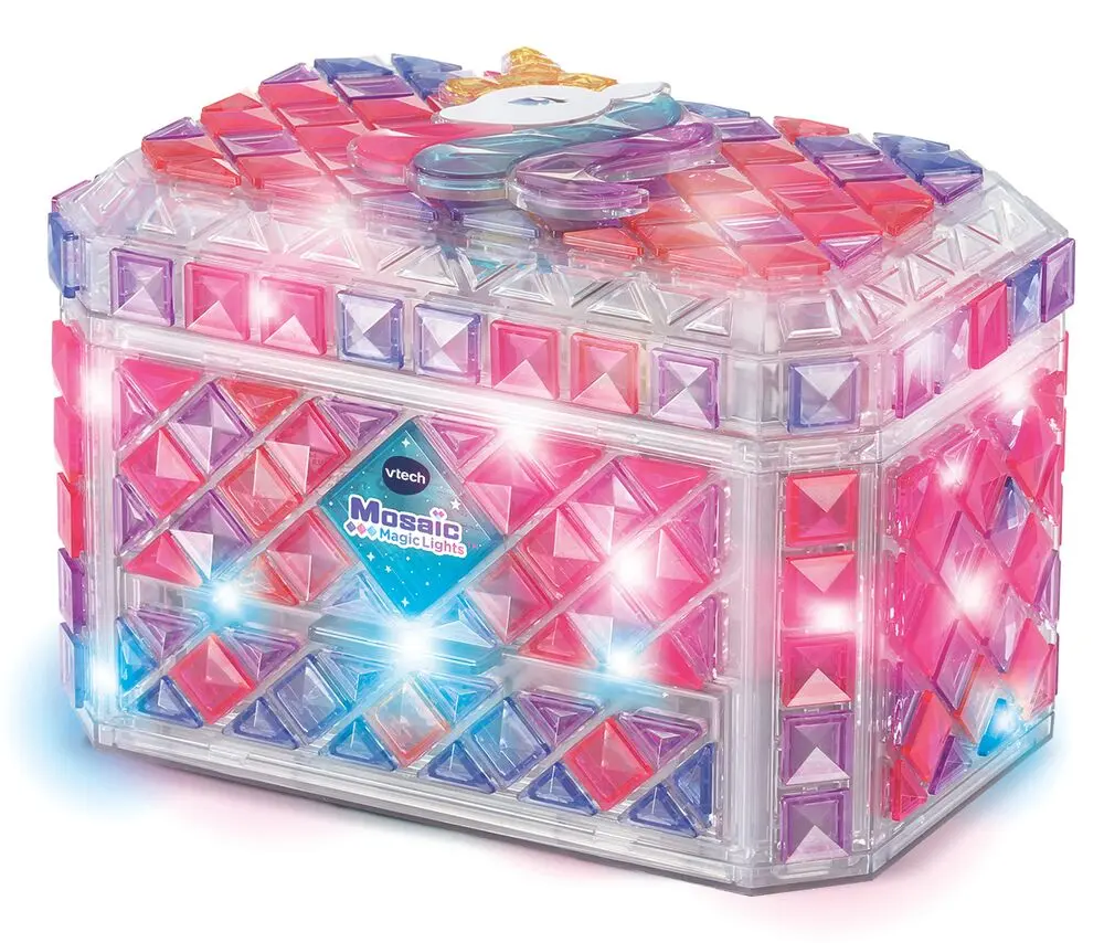 La boîte à bijoux à décorer en mosaïque est le cadeau idéal pour les petits créatifs dès 5 ans. Plus de 200 pièces permettent de la personnaliser à volonté, avec une spatule pour les retirer facilement et recommencer à l’infini. Interactive, elle s’illumine de couleurs et diffuse des mélodies relaxantes ou entraînantes selon le personnage inséré (4 personnages inclus).