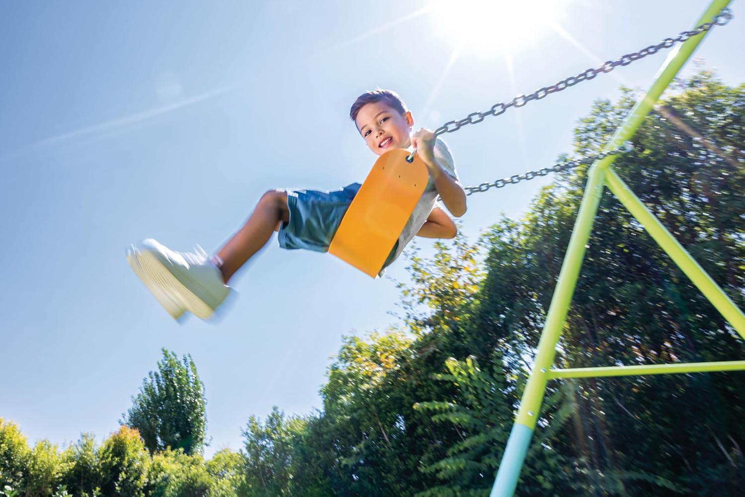 La balançoire à chaîne Intex avec chaînes antidérapantes assure un plaisir de balançoire sûr et confortable pour les enfants de 3 à 10 ans et peut supporter jusqu'à 50 kg.