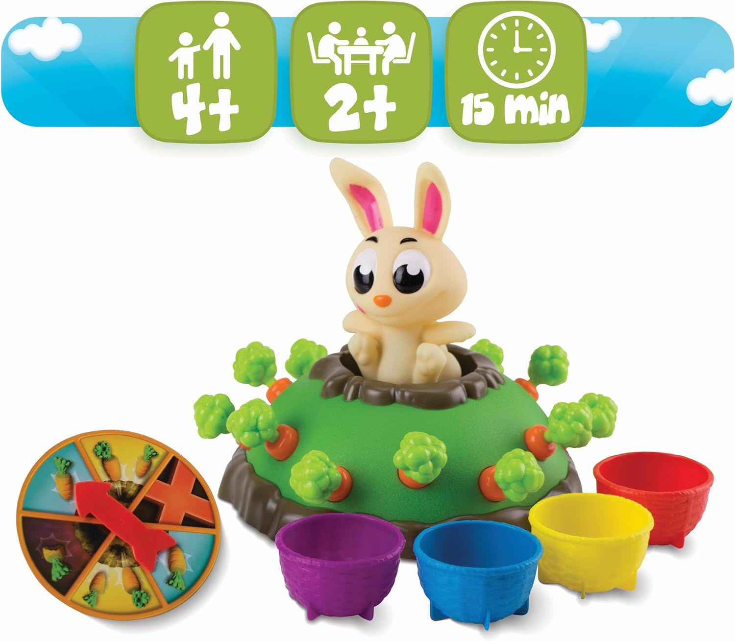 Chop' Lapin de Goliath est un jeu de société amusant conçu pour les enfants dès 4 ans. Le principe est simple : tournez la roulette, attrapez les carottes une à une et espérez que le lapin ne saute pas ! Ce jeu captivant développe la réactivité et la coordination des enfants tout en leur offrant une expérience ludique et interactive. Avec ses parties courtes, d'environ 15 minutes, Chop' Lapin est idéal pour les jeunes joueurs, maintenant leur attention tout au long du jeu. Adapté pour 2 à 5 joueurs, il est parfait pour les familles ou les groupes d’amis. Le matériel, incluant un terrier, un lapin bondissant, des carottes, une roulette et des paniers colorés, est solide et durable, garantissant des heures de plaisir. Chop' Lapin est plus qu’un simple jeu de société : il crée des souvenirs amusants en famille et enseigne aux enfants des compétences essentielles. Offrez-leur un moment de jeu inoubliable avec Chop' Lapin !
