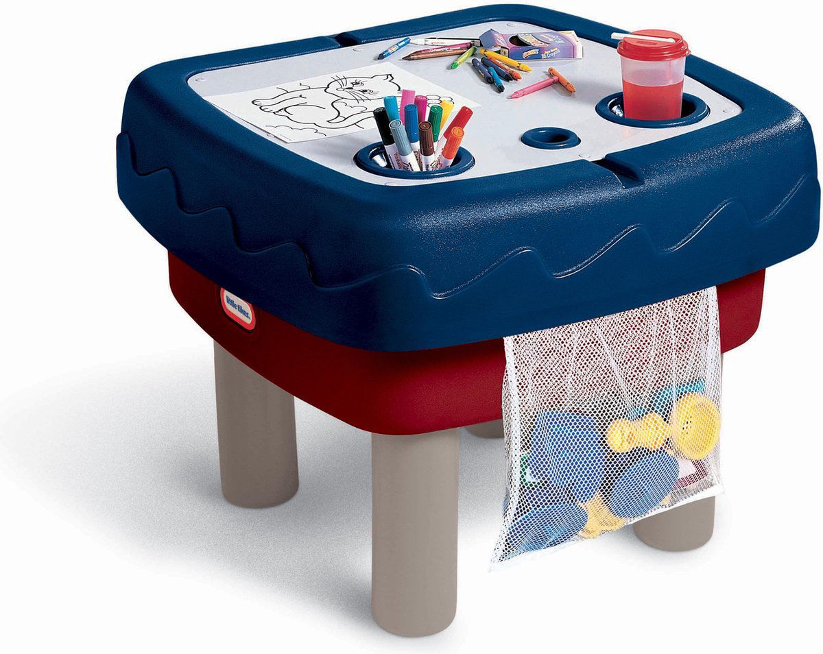 Cette table de jeu modulable comprend un grand bac à sable et un espace aquatique avec une route, un pont et une porte pour créer un port. Deux manivelles permettent aux enfants de créer des courants pour faire naviguer leurs bateaux dans le port. Une fois l'activité terminée, videz l'eau, repliez la table (en rangeant les jouets à l'intérieur) et profitez de sa surface lisse et de ses porte-gobelet intégrés. Envie d'un goûter ou d'un peu de peinture ? Les bateaux sont inclus, mais la pelle, le seau, le sable et la chaise ne le sont pas. De 1 à 6 ans. 144 x 76 x 51cm