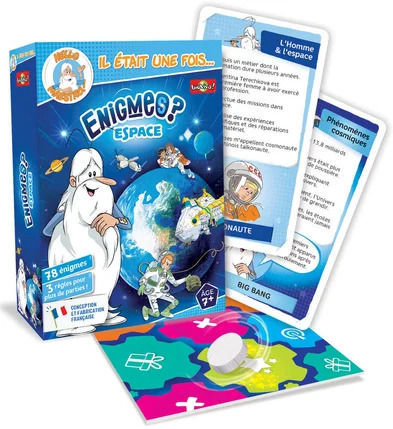 Avec Il était une fois… Enigmes - Espace, tentez d’être le plus rapide à deviner les objets célestes et découvertes spatiales qui se cachent derrière 5 indices instructifs et amusants. Faites preuve d’adresse en lançant le jeton sur le plateau pour tenter de gagner plus de cartes Il était une fois… Enigmes - Espace . Le premier joueur à collecter 6 cartes remporte la partie . Alors, qui sera le plus rapide à deviner les mots recherchés ? Découvrez le en jouant à Il était une fois… Enigmes - Espace . Nouveau Règle Expert avec un nouveau plateau : les joueurs tentent de deviner les mots avec moins d’indices, à l’aide de l’illustration ou de l’information de Maestro sur la carte. Ils lancent le jeton sur le nouveau plateau afin de connaître les indices à énoncer. Ce plateau est utilisable avec tous les jeux de la collection Enigmes . Énigmes - Il était une fois.. Espace c’est : ✓ 78 mots à deviner . ✓ 5 indices par carte, plus une illustration ou une info insolite de Maestro . ✓ 5 sous thématiques : L'Homme & l'espace, Système solaire, Astronomie. ✓ Un plateau de jeu recto/verso avec plusieurs règles pour plus de parties . Age 7 ans et plus .