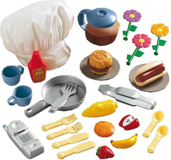 Avec cette cuisine ludique, les enfants peuvent jouer sur 2 côtés. Avec une cuisine ludique avec de vrais sons de cuisine et un vrai barbecue de l'autre côté. Cela le rend extrêmement adapté à plusieurs enfants. Avec de nombreux accessoires. 2x piles AA exclusives pour la cuisine de jeu et 2x D pour le gril. Âge : 3 à 6 ans Taille: 91 * 66 * 114 cm Emballage: 79 * 50 * 106 cm