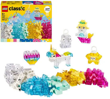 La boîte de briques transparentes magiques LEGO® Classic (11040) stimule la créativité des enfants et inspire une infinité de jeux créatifs et de modèles envoûtants, construits avec les 340 briques de ce set, dont beaucoup sont transparentes, ainsi qu’une sélection d’éléments spéciaux.