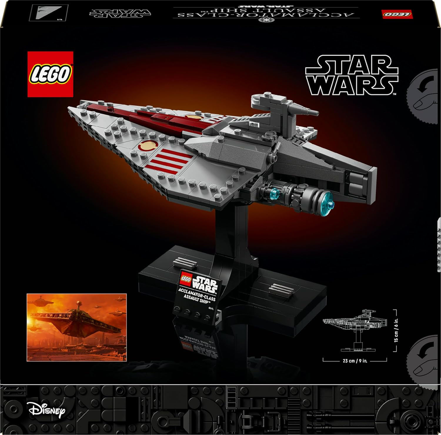 Revivez l’émotion de la bataille de Geonosis pendant la construction du tout premier transport d’assaut de classe Acclamator LEGO Star Wars (75404). Ce set de construction collector du chasseur Star Wars présente de nombreux détails du véhicule culte de Star Wars : L’Attaque des clones. Offrez-vous un moment de détente en construisant cette maquette complexe en briques LEGO, puis affichez votre création sur un présentoir orné d’une plaque nominative. Ce set de construction fait partie de la collection de vaisseaux LEGO Star Wars de taille moyenne. Faites-vous plaisir ou offrez ce set LEGO à d’autres adultes fans de Star Wars ou à des collectionneurs. Dimensions – Le véhicule à construire de ce fantastique set LEGO Star Wars de 450 pièces mesure plus de 15 cm de haut, 23 cm de long et 13 cm de large.