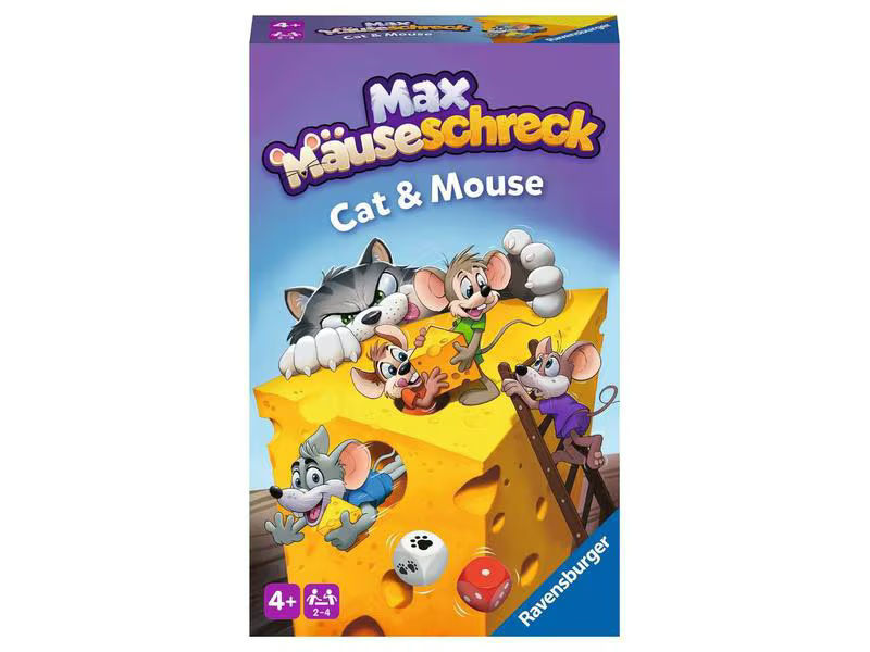 Hmm, un si bon fromage! Les petites souris coquines courent partout et n'en ont jamais assez! En fonction de la case sur laquelle elles se déplacent, elles peuvent ramasser un ou deux morceaux de la réserve. Mais attention: le chat Max rôde. La souris qui le croise perd un morceau de fromage de peur. Ou parfois, Max joue avec elles et les rongeurs coquins ne peuvent alors plus avancer pendant un certain temps. Laquelle d'entre elles est la plus courageuse et peut s'emparer la première de 5 morceaux de fromage? La version compacte du célèbre jeu d'action est idéale pour les enfants à partir de 4 ans et se glisse dans n'importe quel bagage.