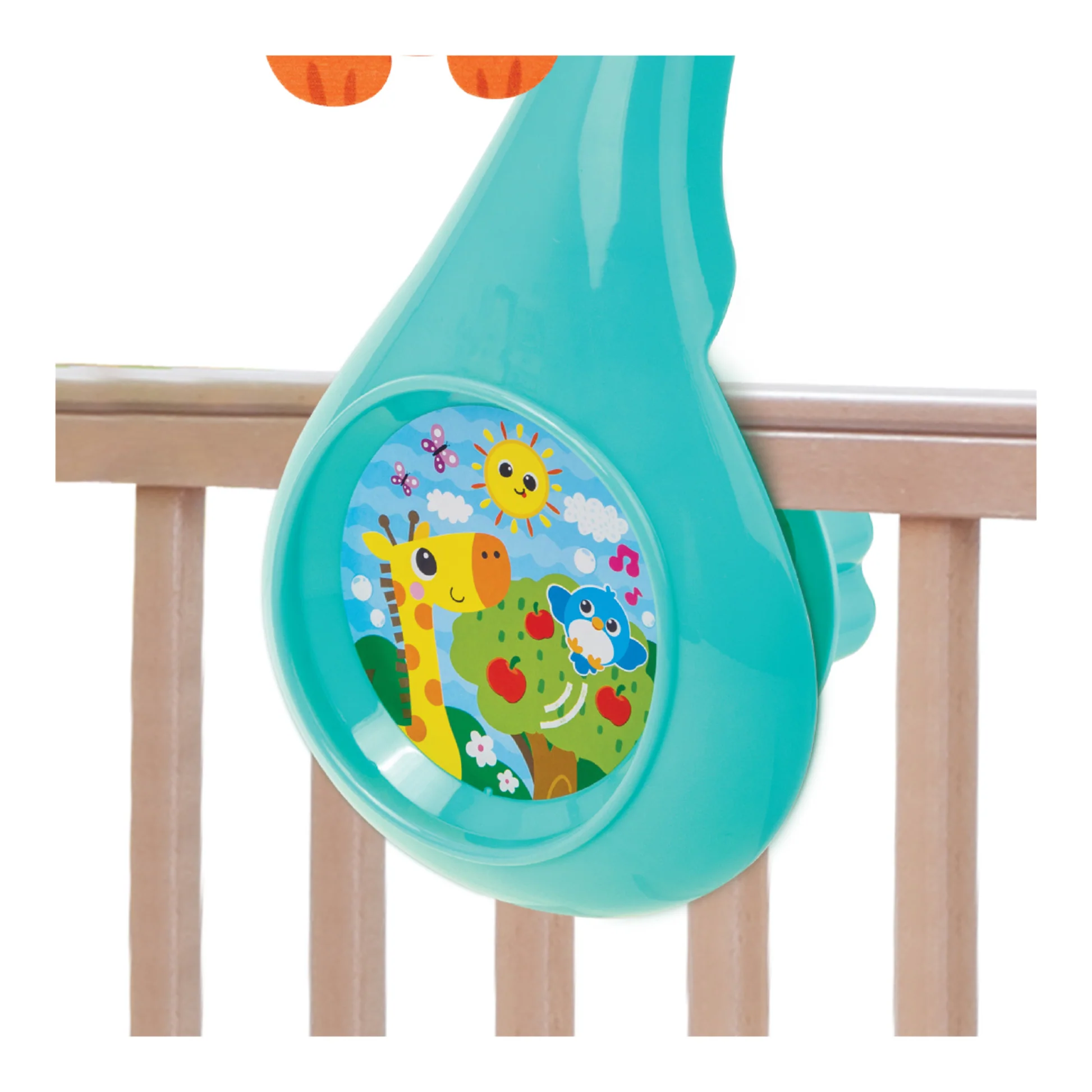 Le mobile Jungle Pals Winfun est un mobile musical rotatif avec projection lumineuse au plafond. Il accompagne bébé vers le sommeil grâce à ses berceuses, ses sons de la nature et ses adorables animaux suspendus.