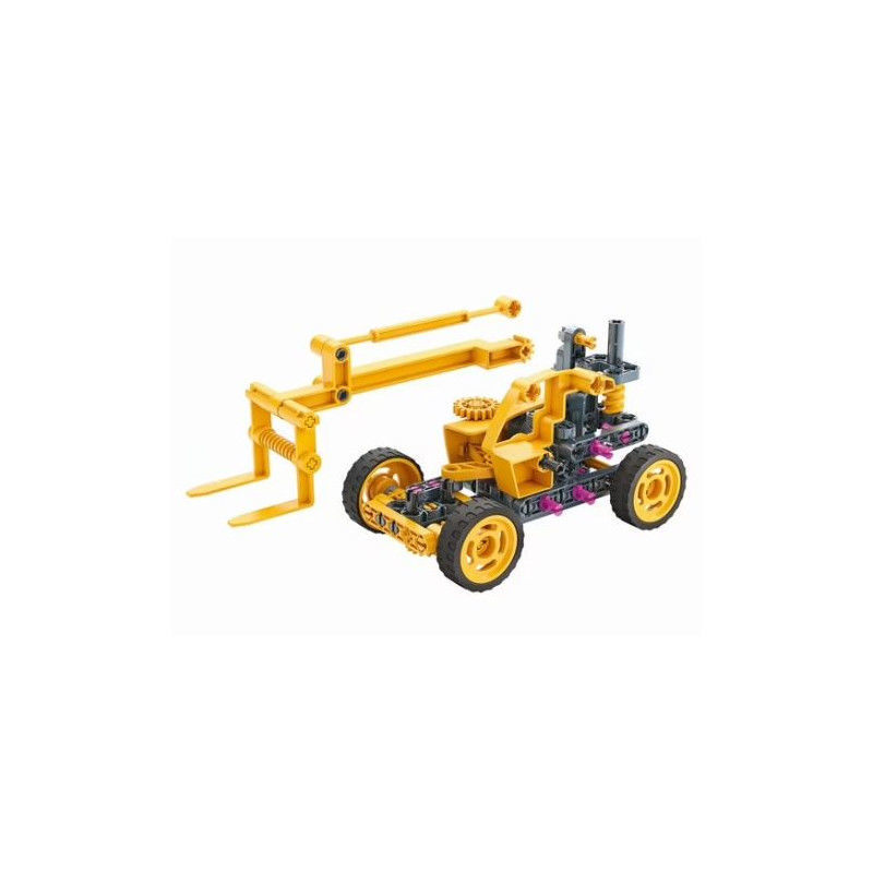 Ce coffret de construction est idéal pour s'amuser à assembler un chariot élévateur avec son bras télescopique. Votre enfant va pouvoir fabriquer un système de direction fonctionnel et reproduire le mouvement du bras élévateur. Ce coffret mécanique contient des engrenages et de nombreuses pièces spécifiques pour fabriquer un système de direction fonctionnel et reproduire le mouvement du bras élévateur. Pratique, grâce au manuel illustré et aux instructions en 3D votre enfant sera guidé de manière simple et intuitive dans la construction de son modèle. Retrouvez les autres coffrets Mon Atelier Mécanique Clementoni pour encore plus de jeu ! Dimensions : 21 x 15 x 5.5 cm