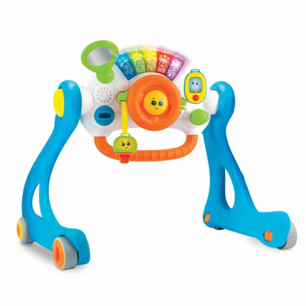 Matière: Plastique Drive 'N Play Gym Walker est un gymnase couché, un tableau de bord assis-debout et un déambulateur et dispose également d'un panneau de jeu amovible. Il dispose de pieds robustes avec des roues texturées qui incluent des verrous de sécurité. Il dispose également d'une clé de voiture amovible et d'un téléphone portable. Il dispose également d'un clavier piano à 5 notes avec des lumières clignotantes et des sons d'animaux amusants et des mélodies. Les pieds sont également amovibles pour faciliter le transport et le rangement. Fonctionne avec 3 piles AA incluses. Convient aux enfants de 3 à 36 mois. Dimensions : 50 x 50 x 60 centimètres