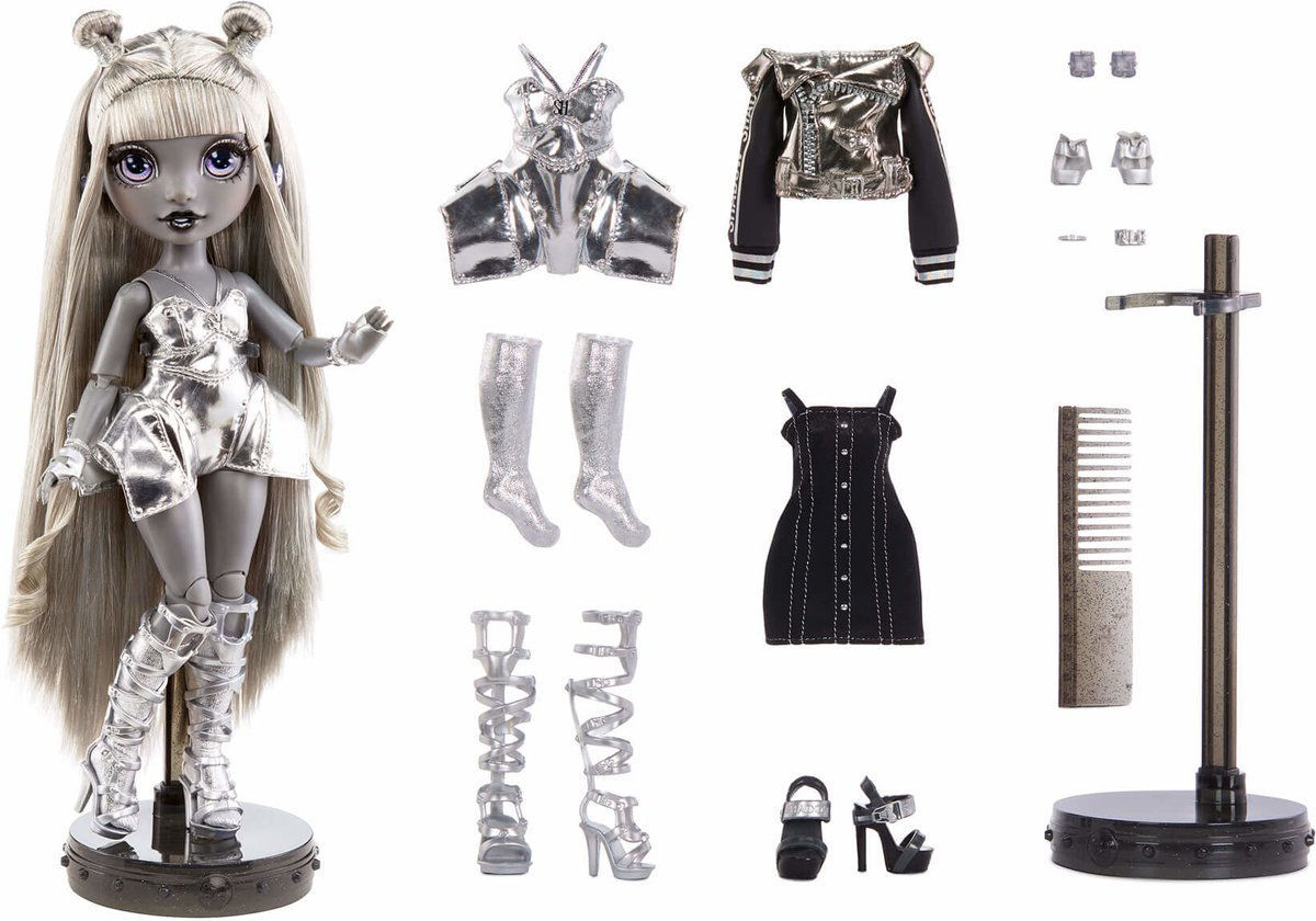 Chaque école a son rival. Attendez-vous à l’inattendu avec les étudiants de Shadow High™, l’école de beaux-arts située de l’autre côté de l’arc-en-ciel. Shadow High inclut 5 poupées mannequin magnifiques ainsi qu’un garçon à la pointe de la mode. Ils ont chacun un style unique, décliné dans leurs deux tenues et leurs accessoires de mode. Quand ils sont alignés, ils forment un spectre unique de l’arc-en-ciel. Contient 1 poupée mannequin Shadow High, 2 tenues, accessoires, 1 peigne et 1 socle de poupée.