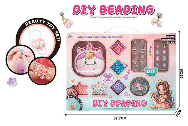 Le kit comprend un boîtier en forme de licorne, plusieurs compartiments de perles colorées (rose, bleu, violet, blanc, rouge), ainsi que des accessoires décoratifs et des fils pour assembler les créations. Caractéristiques principales : *Thème licorne avec un boîtier de rangement mignon et pratique. *Perles variées en différentes formes et couleurs pour stimuler la créativité. *Accessoires inclus pour fabriquer colliers, bracelets et porte-clés. Dimensions de l’emballage : 37,7 cm (longueur) x 27 cm (hauteur) x 5 cm (profondeur). Objectif éducatif : développer la motricité fine, la coordination œil main et l’imagination. Âge recommandé : à partir de 3 ans. Ce kit est idéal pour les activités manuelles, les cadeaux d’anniversaire ou les moments créatifs en famille.