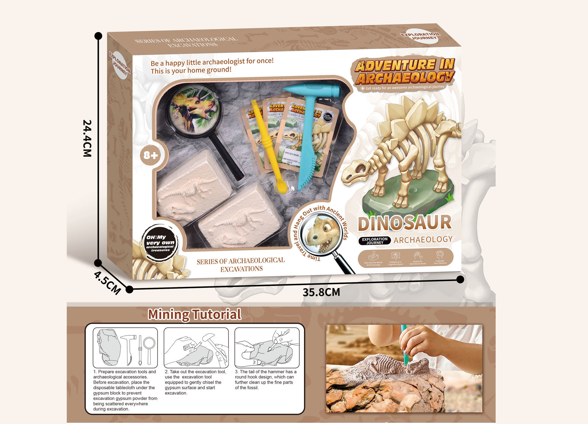 Ce coffret éducatif "Adventure in Archaeology – Dinosaur Archaeology" est conçu pour initier les enfants à l’archéologie de manière ludique. Il est recommandé pour les enfants de 8 ans et plus. Contenu du coffret : 2 blocs de plâtre contenant des fossiles de dinosaures à découvrir. Outils d’excavation (marteau, burin, pinceau). Loupe pour examiner les détails. Cartes ou fiches d’information sur les dinosaures. Dimensions de la boîte : Longueur : 35,8 cm Hauteur : 24,4 cm Profondeur : 4,5 cm. Ce jouet permet aux enfants de jouer les petits archéologues, de développer leur patience et leur curiosité scientifique tout en découvrant le monde des dinosaures.