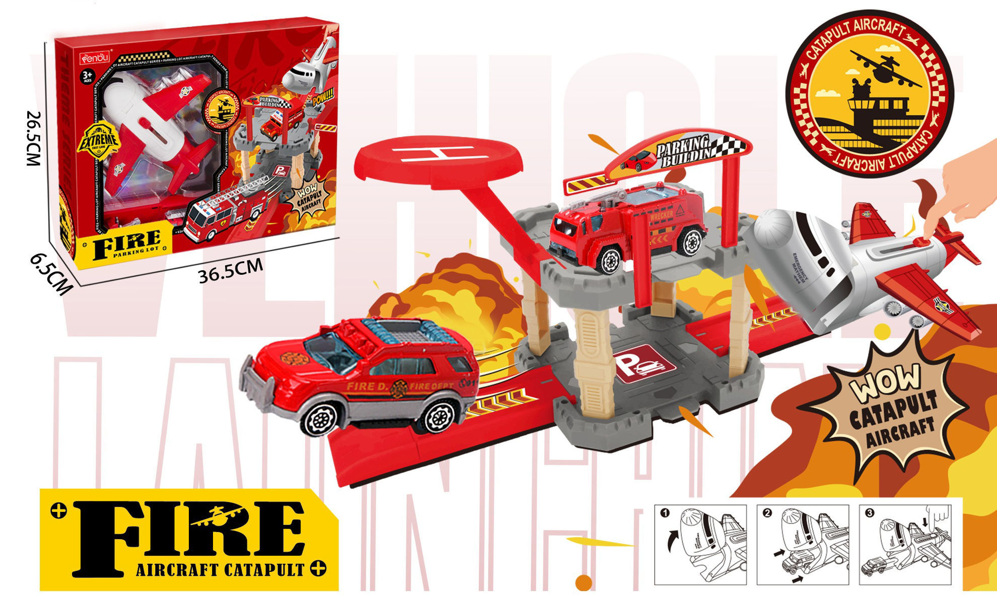 Cet ensemble de jeu Fire Aircraft Catapult est un jouet pour enfants à partir de 3 ans, sur le thème des pompiers. Il comprend un parking à plusieurs niveaux, un camion de pompiers, un véhicule de secours et un avion équipé d’un mécanisme de catapulte. Ce jouet stimule l’imagination, la coordination et le jeu de rôle autour des missions de secours aériennes et terrestres.