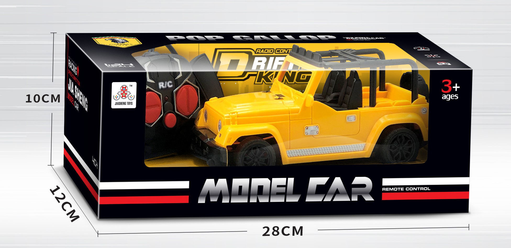 Il s’agit d’un jouet voiture tout-terrain télécommandée. Disponible en trois couleurs : bleu, jaune et rouge. Le produit est destiné aux enfants à partir de 3 ans. Dimensions de la voiture : 18 cm de long, 8 cm de large, 7,7 cm de haut. Dimensions de la boîte : 28 cm de long, 12 cm de large, 10 cm de haut. Les couleurs selon la disponibilité.