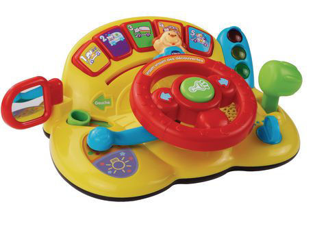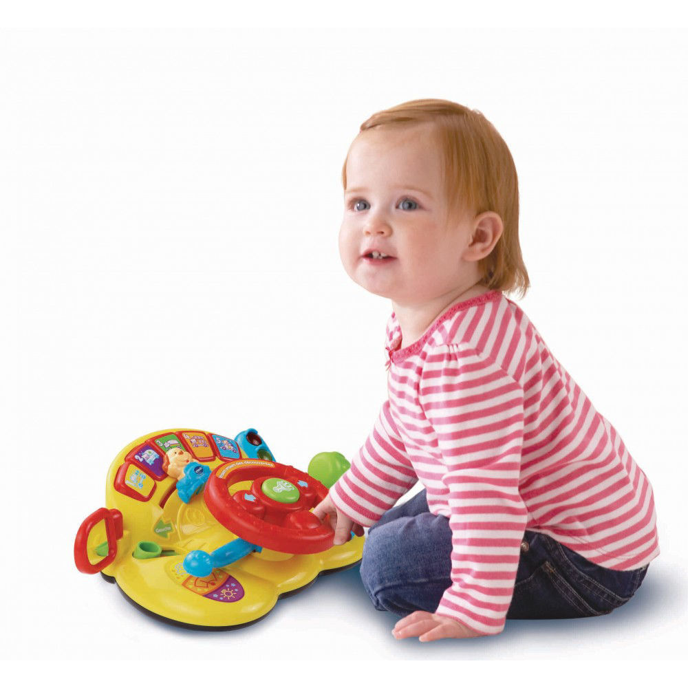Un tableau d’activités interactif pour faire le plein de découvertes ! Vroum Vroum des découvertes est un tableau de bord doté de nombreuses fonctionnalités : volant à faire tourner, levier de vitesses à actionner, clé de contact, rétroviseur, Klaxon et clignotant, qui permettent à Bébé de développer sa motricité. Au travers des 3 modes de jeu, Bébé découvre les nombres, les couleurs, les animaux et différents véhicules. Bébé joue en rythme grâce aux 2 chansons et 10 mélodies. Grâce à Vroum Vroum des découvertes, Bébé va devenir un vrai petit pilote ! Les effets sonores réalistes et amusants stimulent l’imagination de Bébé qui s’amuse au volant de sa voiture 10 mélodies, 2 chansons, des sons réalistes, des phrases ainsi que des effets lumineux