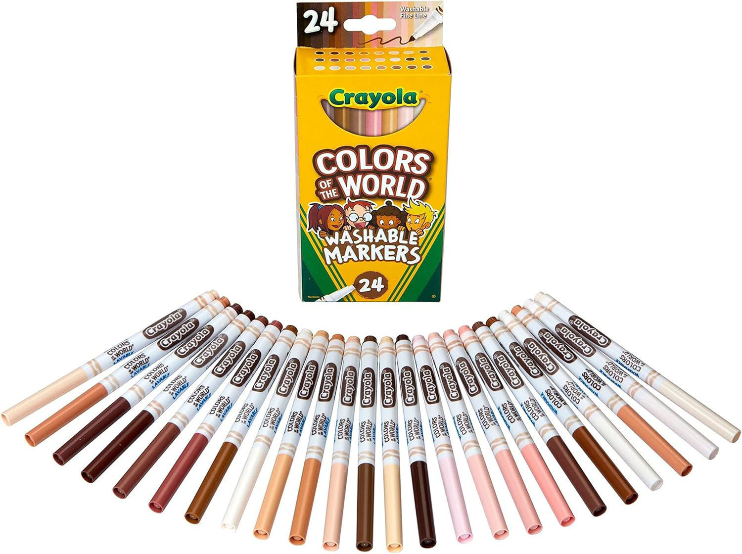 24 FEUTRES : Ce coffret de feutres Crayola comprend 24 couleurs représentant des personnes du monde entier. IDÉAL POUR LES LIVRES DE COLORIAGE : Ces feutres couleur chair lavables sont un ajout original à votre collection Crayola. Ils permettent de rendre vos coloriages et dessins encore plus détaillés et réalistes. FEUTRES LAVABLES : Les feutres lavables Crayola s'enlèvent facilement de la peau et de la plupart des vêtements. FOURNITURES SCOLAIRES : Équipez vos salles de classe et vos ateliers créatifs avec ces feutres pour les projets scolaires, les activités manuelles et bien plus encore ! COULEURS DU MONDE : Ce coffret inclut des couleurs telles que Amande foncée, Doré moyen et Rose clair.